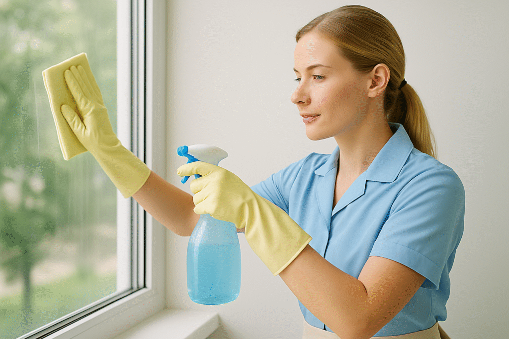 - Limpieza diaria de vidrios, mesas, pantallas y superficies delicadas.